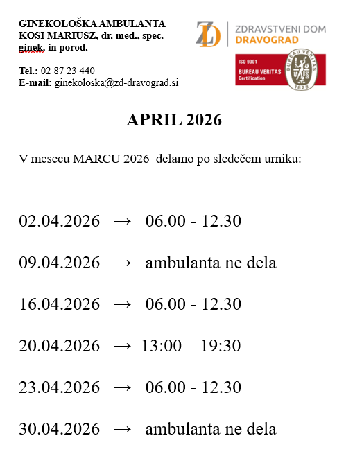 Za pregled se je potrebno naročiti!